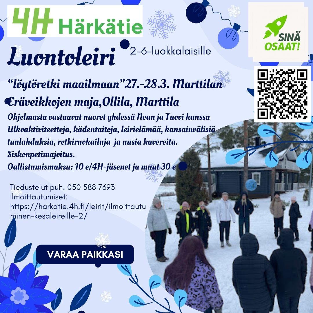 Lasten luontoleiri 27.-28.3. 2026 Marttilan eräveikkojen metsästysmaja - toteutuksesta vastaavat nuoret